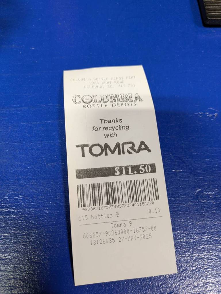 今回私が訪れた際は、4人家族、かつ2カ月分程度の缶やボトルをリサイクルしましたが、およそ11カナダドルゲットできました。もっと頻繁にお酒を飲む方とかだと、もうすこし金額はいくと思います。