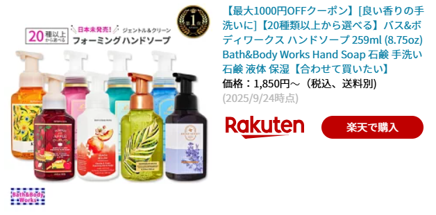 カナダではショッピングモールなどでよく見かけるBath and Body。日本には出店をしていないブランドですが、ハンドソープの香りがとても豊富です。日本で手軽に外国気分を味わいたい方にお勧めです!